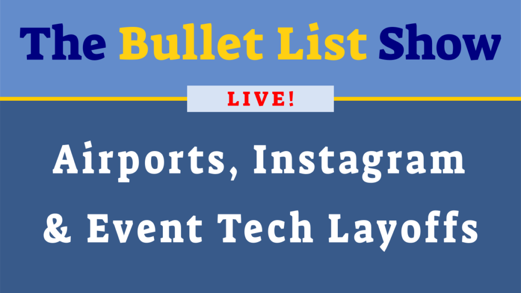 In addition to our podcast episodes, we also go live on Facebook and YouTube. In this first proper live chat, we discuss Keith’s recent airport experience, the recent lay-offs in event tech (more here and here), and how Instagram is testing out desktop streaming.