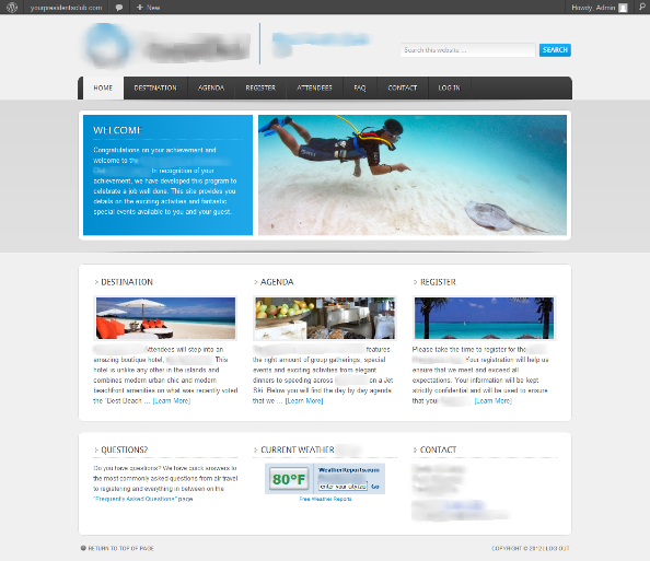 The website needed to be engaging and beautiful and contain all of the information that the attendees might need, including air travel info, activities info, and a complete registration system that allows the winners to pick their activities and dine-around selections.